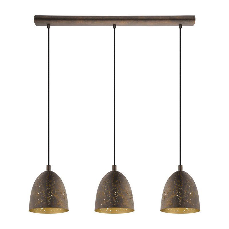 Die braune retro Pendelleuchte Ajay ist hergestellt aus Stahl. Die braune Pendelleuchte wird ohne passende Leuchtmittel mit E27-Fassung geliefert. Die Leuchte benötigt 3 passende E27-Lichtquellen mit einer maximalen Leistung von 60 Watt.