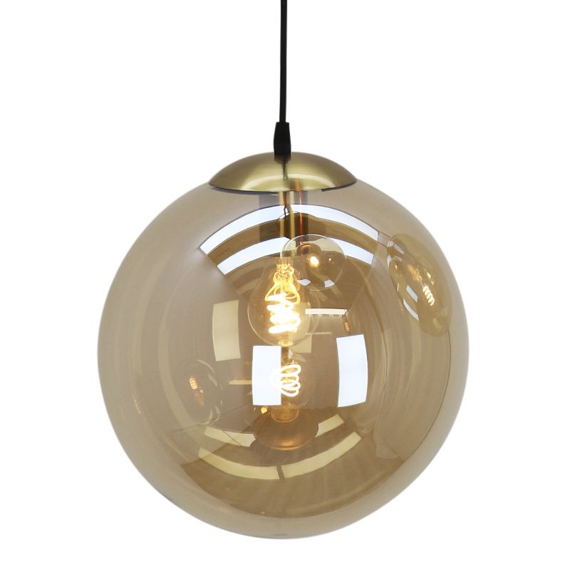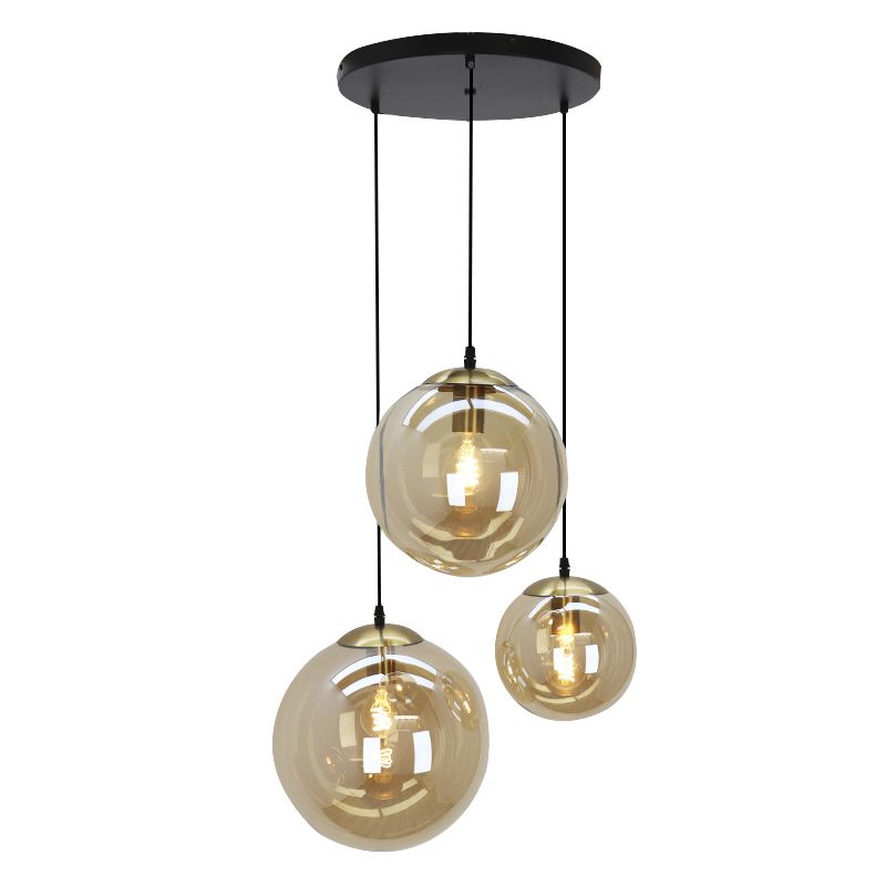 Die design Pendelleuchte Dolf ist in der Farbe Bernstein und aus Glas gefertigt. Die Bernstein Pendelleuchte wird ohne passende Leuchtmittel geliefert. Diese Lampe benötigt 3 Lichtquellen mit E27-Fassungen. Die maximale Wattleistung der Lichtquellen ist 60 Watt.