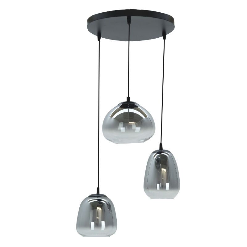 Die design Pendelleuchte Semra ist in der Farbe Grau und aus Glas gefertigt. Die graue Pendelleuchte wird ohne passende Leuchtmittel geliefert. Diese Lampe benötigt 3 Lichtquellen mit E27-Fassungen. Die maximale Wattleistung der Lichtquellen ist 40 Watt.