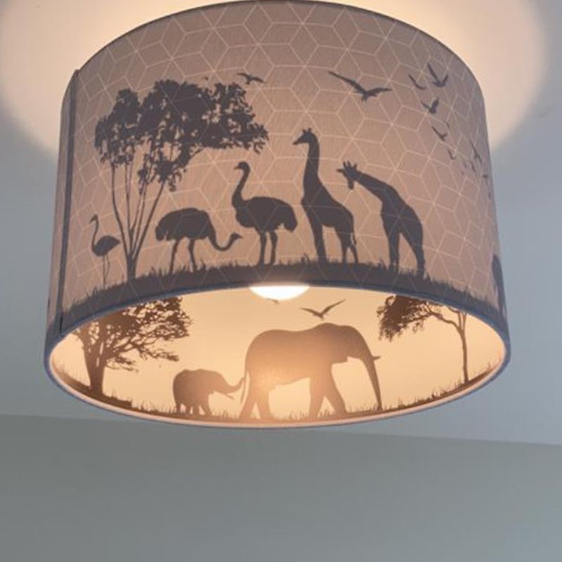 - Graue Kinder Deckenleuchte Safari, Stoff