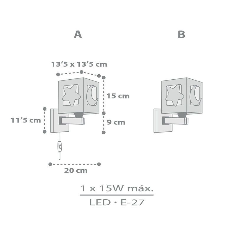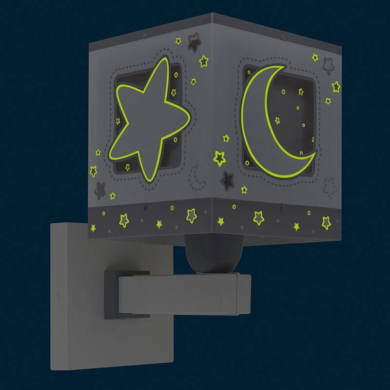 Die graue Kinderzimmer Wandleuchte Moonlight ist aus Kunststoff hergestellt. Diese graue Kinderzimmer Wandleuchte hat eine E27-Fassung, und wird ohne passende Lichtquelle geliefert. In der Lampe können Lichtquellen mit einer maximalen Leistung von 15 Watt.