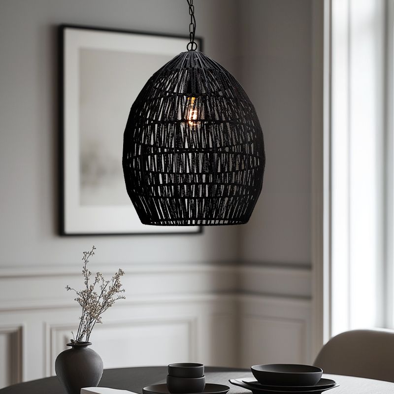 Special Price 44,99 UVP: Regular Price 64,99Auf Lager Rattan Pendelleuchte Schwarz, Rosa- B: 46 cm, H: 120 cm