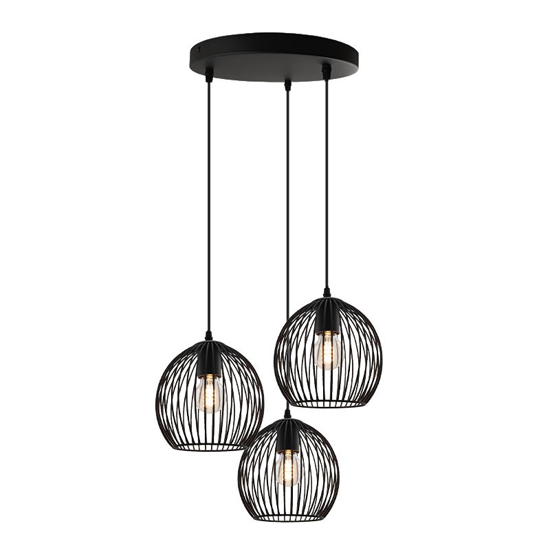 Die industrielle Pendelleuchte Wiro ist in der Farbe Schwarz und aus Metall gefertigt. Die schwarze Pendelleuchte wird ohne passende Leuchtmittel geliefert. Diese Lampe benötigt 3 Lichtquellen mit E27-Fassungen. Die maximale Wattleistung der Lichtquellen ist 60 Watt.