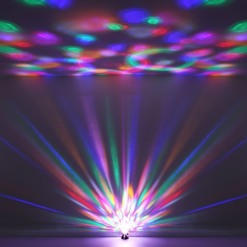 Die mehrfarbige Discolampe lässt verschiedenfarbige Lichtstrahlen durch Ihren Raum schießen und schafft eine festliche Atmosphäre.