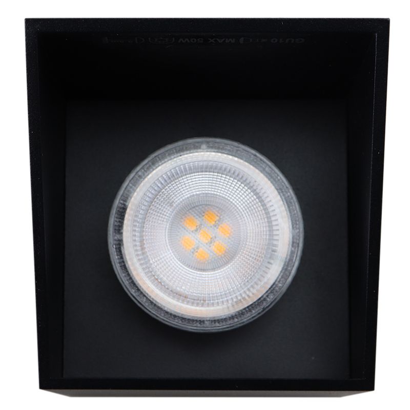 Das moderne Aufbauspot Neva ist in der Farbe Schwarz und aus Aluminium gefertigt. Das schwarze Aufbauspot wird ohne passendes Leuchtmittel geliefert. In diese Lampe muss eine Lichtquelle mit einer GU10-Fassung und die maximale Wattzahl der Lichtquelle ist 50 Watt.