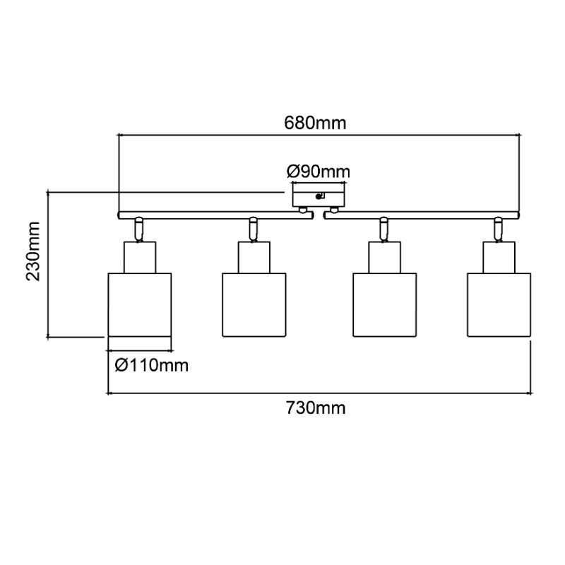 Produktinformatik Maximale Watt 40 Anschlussspannung 220-240V Anzahl der Lampen 4 Fassung E27 Produktinformatik Inkl. Licht Nein Breite in cm 11 Gewicht in kg 1.458 Höhe in cm 23 Länge in cm 73 Dimmbar Ja (nicht enthalten) Garantie 2 Jahre IP-Wert IP20 (staubdicht) Farbe Grau, Schwarz Material Metall, Glas Stil Modern Artikelnummer Q79820