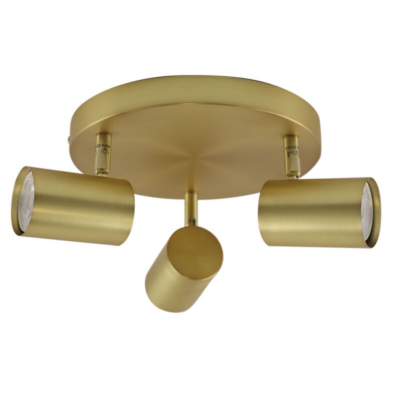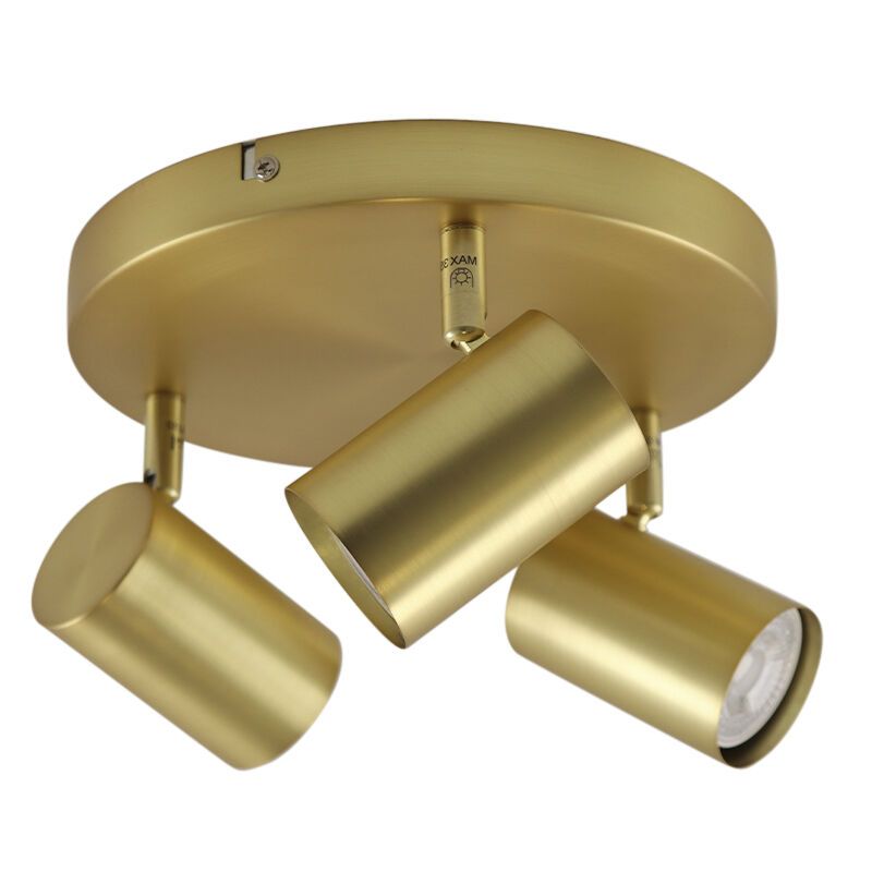 Der moderne Deckenstrahler Elena ist in der Farbe Messing und aus Metall gefertigt. Der messing Deckenstrahler wird ohne passende Leuchtmittel geliefert. Diese Lampe benötigt 3 Lichtquellen mit GU10-Fassungen. Die maximale Wattleistung der Lichtquellen ist 35 Watt.