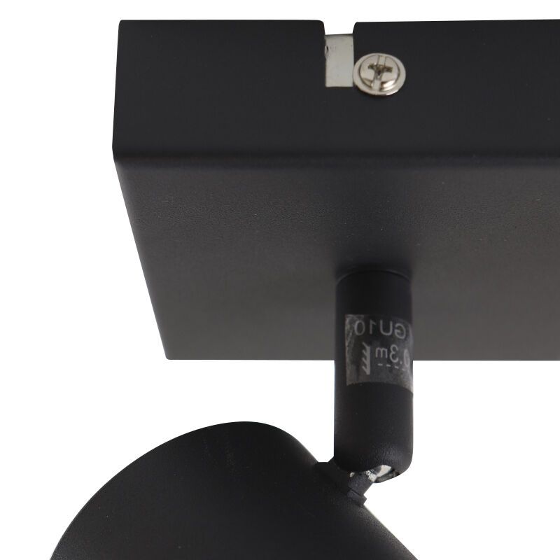 Der moderne Deckenstrahler Elena ist in der Farbe Schwarz und aus Metall gefertigt. Der schwarze Deckenstrahler wird ohne passendes Leuchtmittel geliefert. In diese Lampe muss eine Lichtquelle mit einer GU10-Fassung und die maximale Wattzahl der Lichtquelle ist 35 Watt.