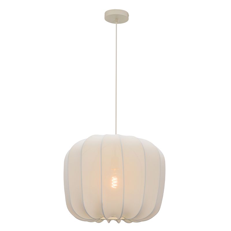 Die moderne Pendelleuchte Deborah ist in der Farbe Weiß und aus Stoff gefertigt. Die weiße Pendelleuchte wird ohne passendes Leuchtmittel geliefert. In diese Lampe muss eine Lichtquelle mit einer E27-Fassung und die maximale Wattzahl der Lichtquelle ist 40 Watt.