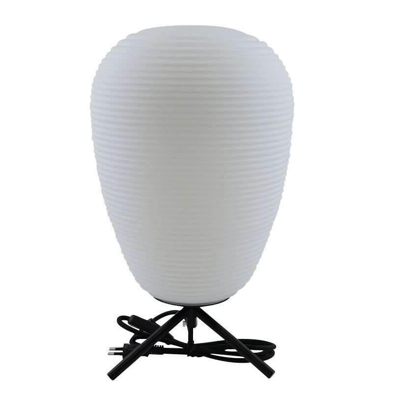 Die moderne Tischleuchte Davide ist in der Farbe Weiß und aus Glas gefertigt. Die weiße Tischleuchte wird ohne passendes Leuchtmittel geliefert. In diese Lampe muss eine Lichtquelle mit einer E27-Fassung und die maximale Wattzahl der Lichtquelle ist 40 Watt.