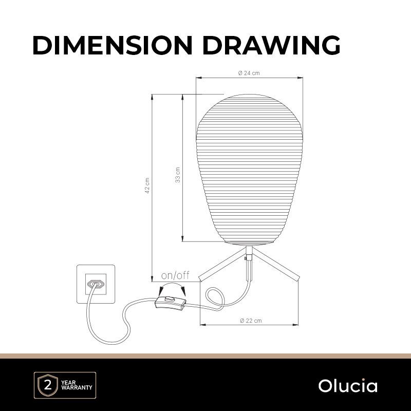 Diese moderne Tischleuchte hat einen Ein-/Ausschalter am Kabel, mit dem Sie die Lampe einfach ein- und ausschalten können.