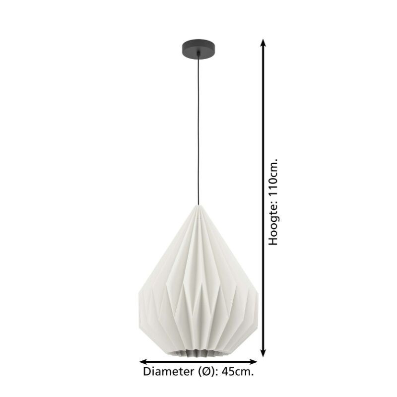 Papier Pendelleuchte Weiß, Harmjan- D: 24 cm, H: 110 cm