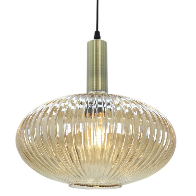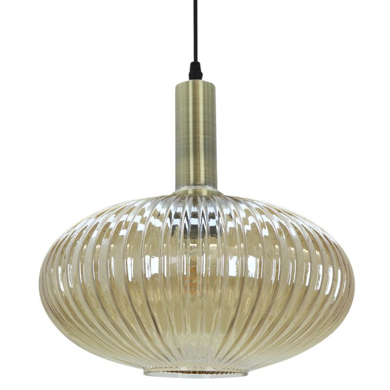 Die retro Pendelleuchte Charlois ist in der Farbe Bernstein und aus Glas gefertigt. Die Bernstein Pendelleuchte wird ohne passendes Leuchtmittel geliefert. In diese Lampe muss eine Lichtquelle mit einer E27-Fassung und die maximale Wattzahl der Lichtquelle ist 40 Watt.