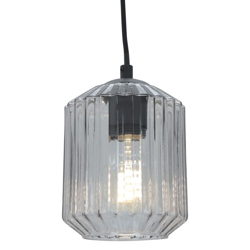 Special Price 39,99 UVP: Regular Price 89,99Auf Lager Graue Esstisch Pendelleuchte Charlois, Glas, retro, 3L- D: 30 cm, H: 120 cm