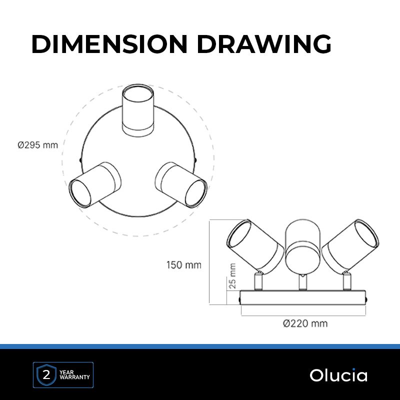 • 3 x GU10 Fassung (exkl. Leuchtmittel)