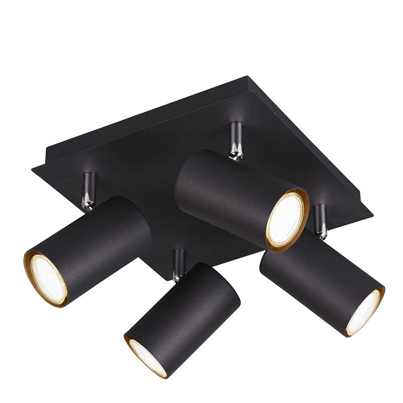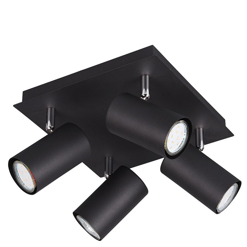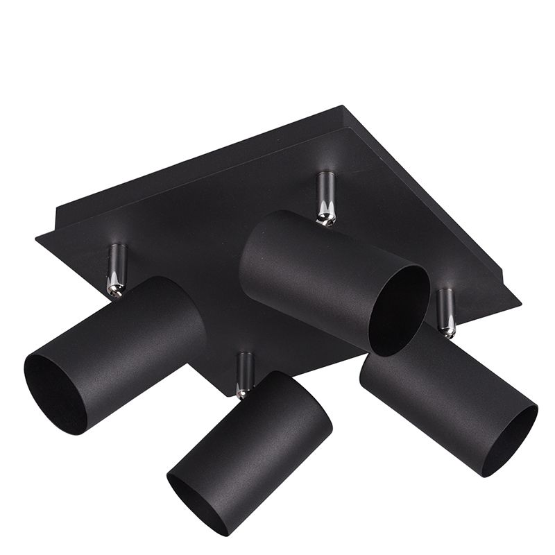 Der schwarze Deckenstrahler Kaso hat den Stil Modern und ist aus Metall gefertigt. Dieser moderne Deckenstrahler hat 4 GU10-Fassungen, und wird ohne passende Lichtquellen geliefert. Die Lampe ist geeignet für Lichtquellen mit einer maximalen Leistung von 35 Watt.