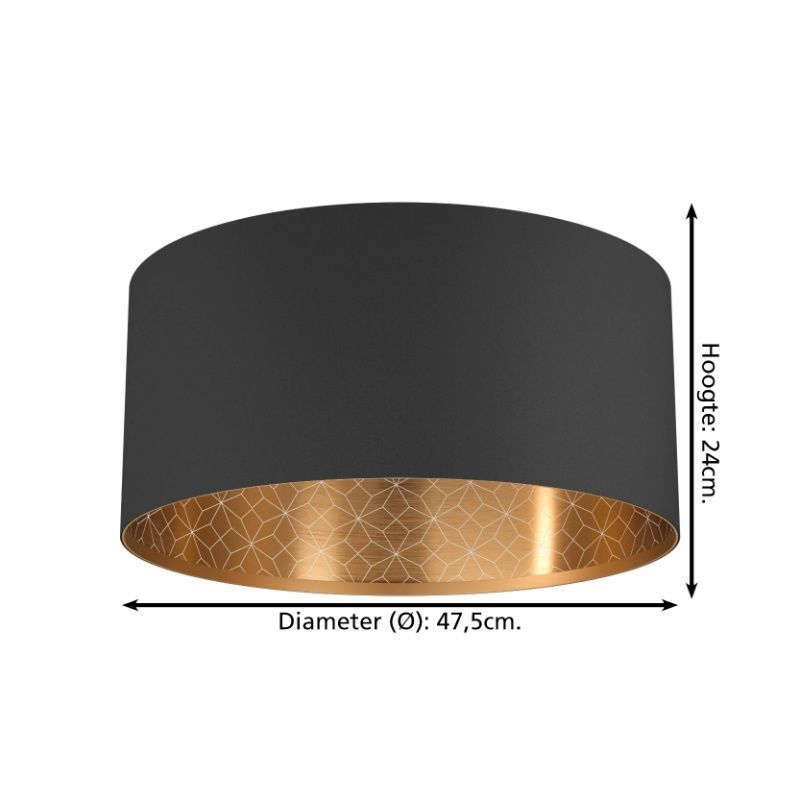Die schwarze moderne Deckenlampe Kelsey ist hergestellt aus Stoff. Die schwarze Deckenlampe wird ohne passendes Leuchtmittel mit E27-Fassung geliefert. Die Lampe ist geeignet für Lichtquelle mit einer maximalen Leistung von 40 Watt.