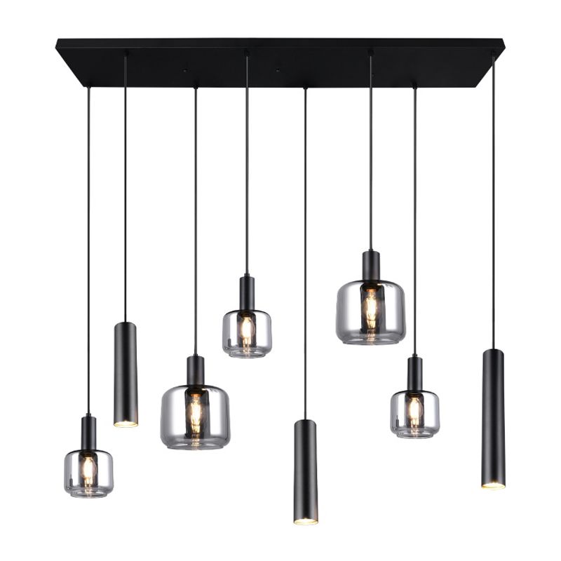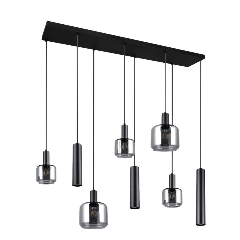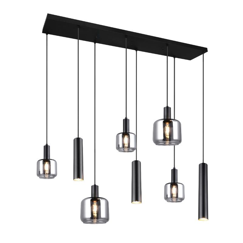 Die schwarze Pendelleuchte Lahcen hat den Stil Design und ist aus Metall gefertigt. Diese design Pendelleuchte hat 2 x E27, 3 x E14, 3 x GU10-Fassungen, und wird ohne passende Lichtquellen geliefert. Die Lampe ist geeignet für Lichtquellen mit einer maximalen Leistung von 50 Watt.
