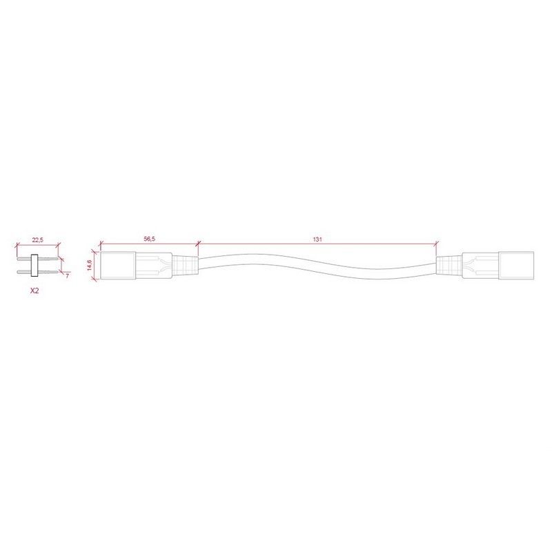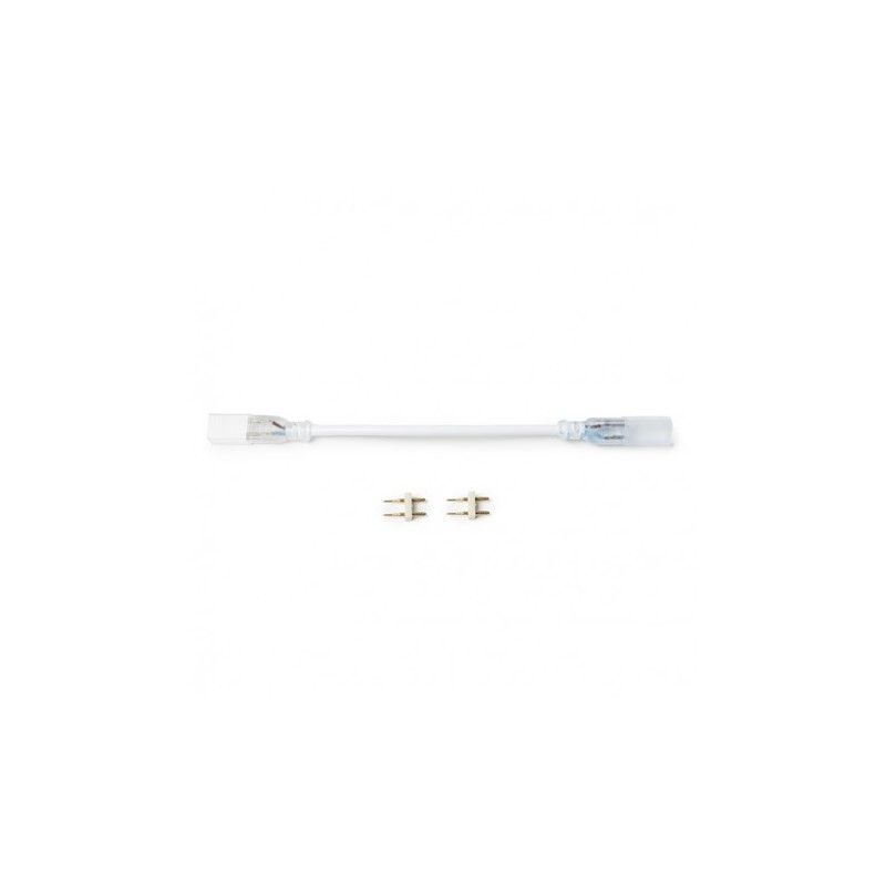 Verlängerungskabel zum Verbinden von 2 Stück des 220 Volt LED-Streifens. Das Verlängerungskabel wird komplett inklusive der Anschlusspins geliefert. Das Kabel zwischen den Steckern ist 13 cm lang. Wenn Sie ein längeres Stück verlängern möchten, können Sie das Kabel auch abschneiden und ein zusätzliches Kabel zwischen die 2 Anschlusspunkte legen.