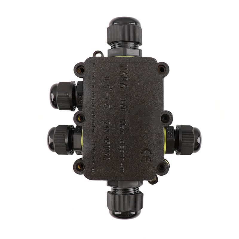 - Wasserdichte 5-Wege-Kabelkupplung mit innenliegendem Wago-Stecker, IP68