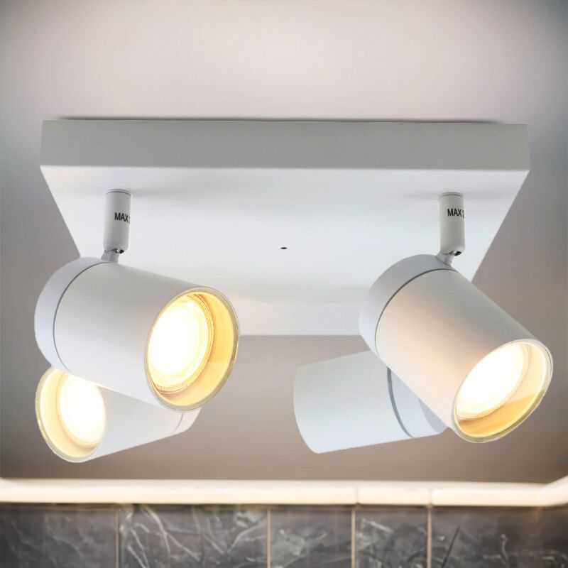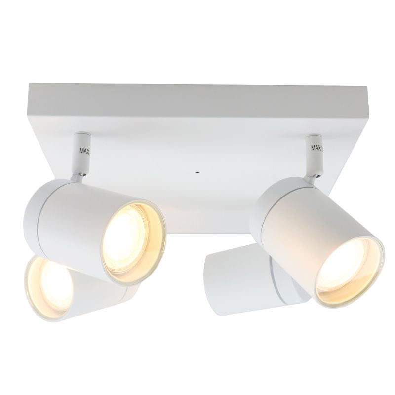 Der moderne Deckenstrahler Ciara ist in der Farbe Weiß und aus Aluminium gefertigt. Der weiße Deckenstrahler wird ohne passende Leuchtmittel geliefert. Diese Lampe benötigt 4 Lichtquellen mit GU10-Fassungen. Die maximale Wattleistung der Lichtquellen ist 28 Watt.